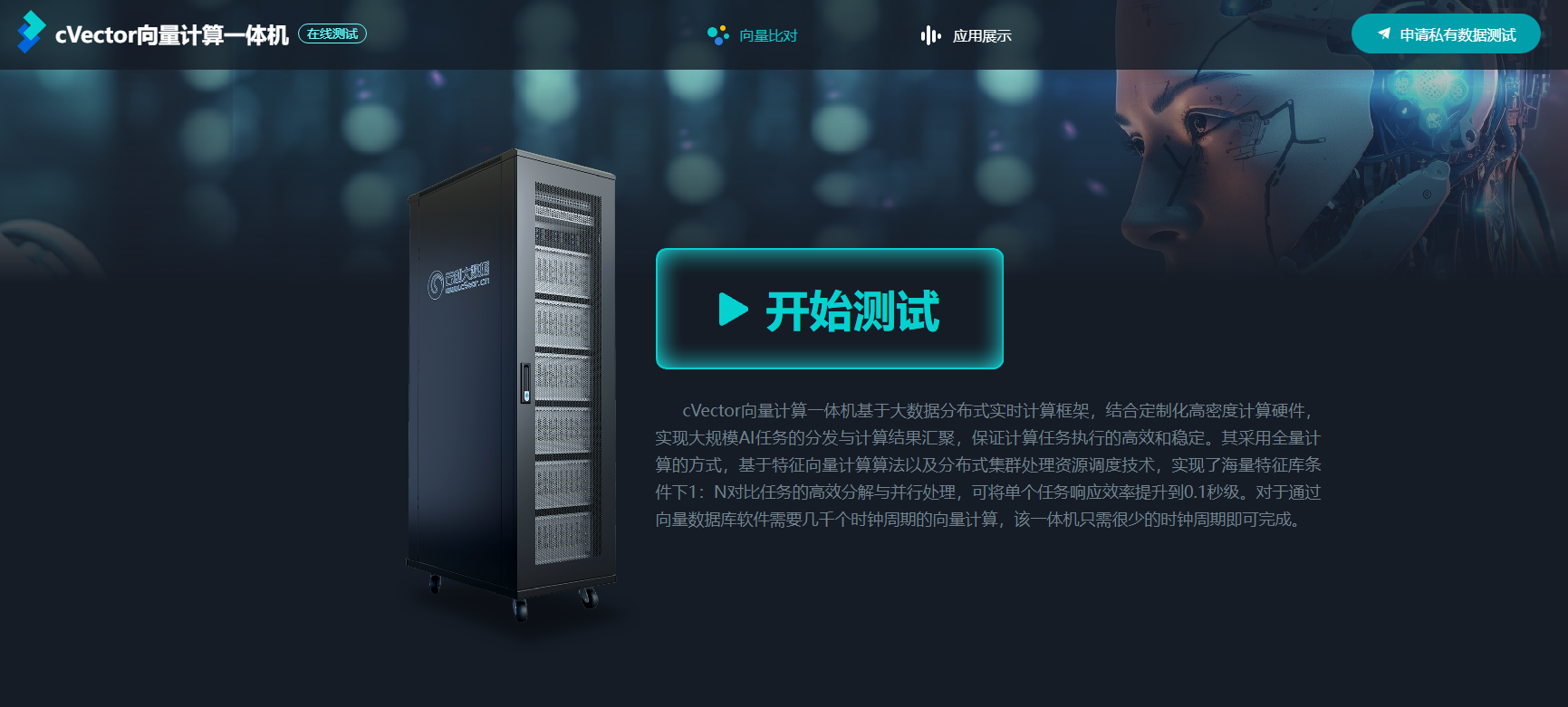 cVector向量計(jì)算一體機(jī)是一種面向億級(jí)以上向量計(jì)算場景的高性能向量存儲(chǔ)、計(jì)算一體化平臺(tái),采用并行計(jì)算架構(gòu),融合高密度混合服務(wù)硬件,實(shí)現(xiàn)對大規(guī)模向量數(shù)據(jù)的計(jì)算和比對,相較于通過GPU、向量數(shù)據(jù)庫進(jìn)行向量計(jì)算,cVector向量計(jì)算一體機(jī)在入庫效率、計(jì)算性能方面優(yōu)勢突出,可廣泛應(yīng)用于人工智能大模型、機(jī)器學(xué)習(xí)、計(jì)算機(jī)視覺、自然語言處理等領(lǐng)域。